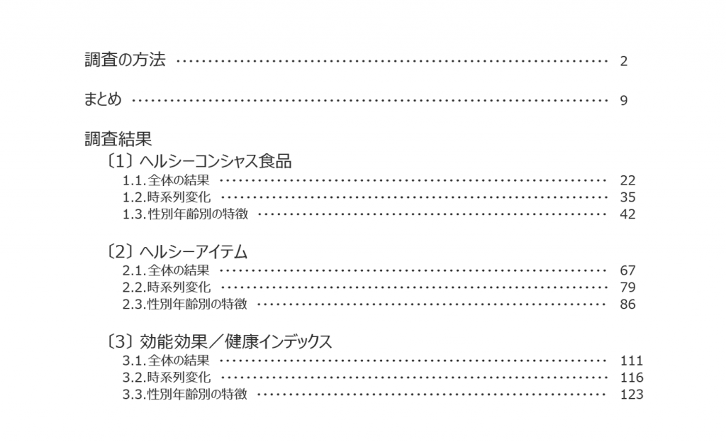 時系列分析を行い、ヘルシーコンシャス食品、ヘルシーアイテム、